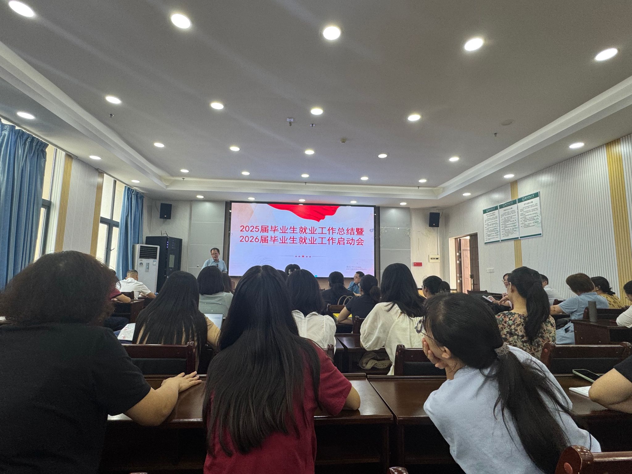 在理综楼1003会议室召开2025届毕业生就业工作总结暨2026届毕业生就业工作启动会,全面复盘过往就业工作成效,系统部署新一届就业推进任务。会议由学院党委书记余朝文主持,领导班子成员及全体教职工参会。