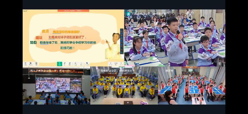 活动于10月23日上午由环江毛南族自治县第一小学作为授课主讲端进行小学数学的课例展示,下午由玉林市玉州区古定中心小学作为授课主讲端进行小学语文的课例展示,10月30日上午由南宁市金阳路小学作为授课主讲端进行小学心理健康的课例展示,下午由桂林市秀峰区桥头小学作为授课主讲端进行小学思政、小学美术的课例展示。四地小学教师聚焦数学、语文、心理健康、思政、美术共5节课5个学科,通过云端集体备课打磨课例、课例展示、组织学生云端参与课堂互动,不仅展示了AI技术与各学科教学相融合的阶段性成果,也改进了传统教育在时间和空间上的束缚。课例展示结束后,四地教师借助云端实时共享技术,围绕学生学科核心素养的提高和AI技术与学科教学紧密融合等方面对展示的课例进行点评。