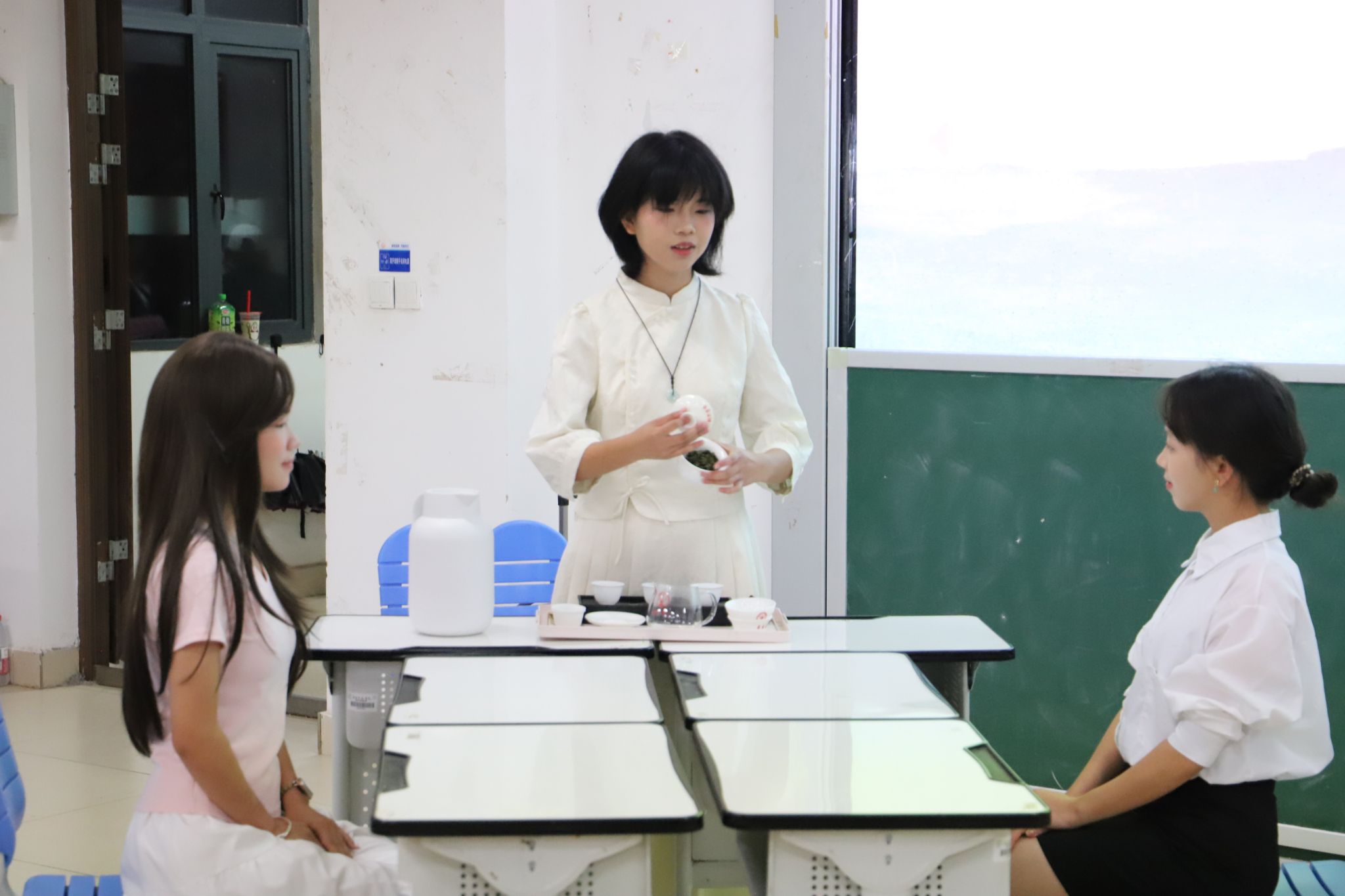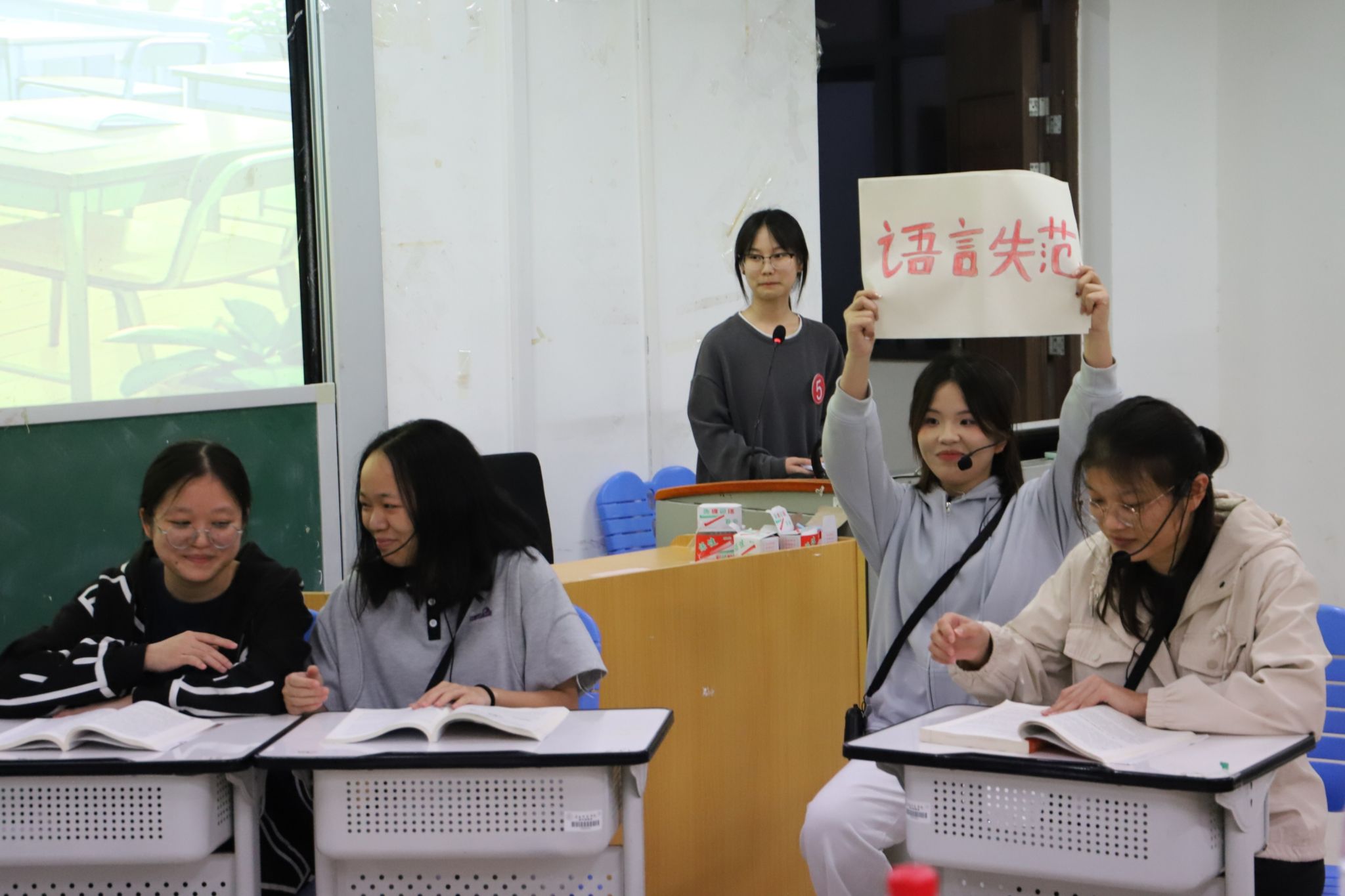 六支参赛队伍先后上台进行3分钟内的礼仪知识讲解,随后呈现3-5分钟的情景演绎。其中“礼记队”以茶文化礼仪为主题,不仅系统分享相关知识,还现场演示茶艺操作,让观众直观感受传统礼仪魅力;“礼韵风华队”聚焦求职面试场景,详细讲解面试礼仪标准与前期准备要点,内容实用且具有指导性;“仪风逐光队”则围绕宿舍交往礼仪展开,传递出“构建温馨集体、促进和谐相处”的理念。各队通过“知识讲解+情景演绎”的结合,将不同场景下的礼仪要点具象化,充分展现了对礼仪文化的理解与运用能力。
