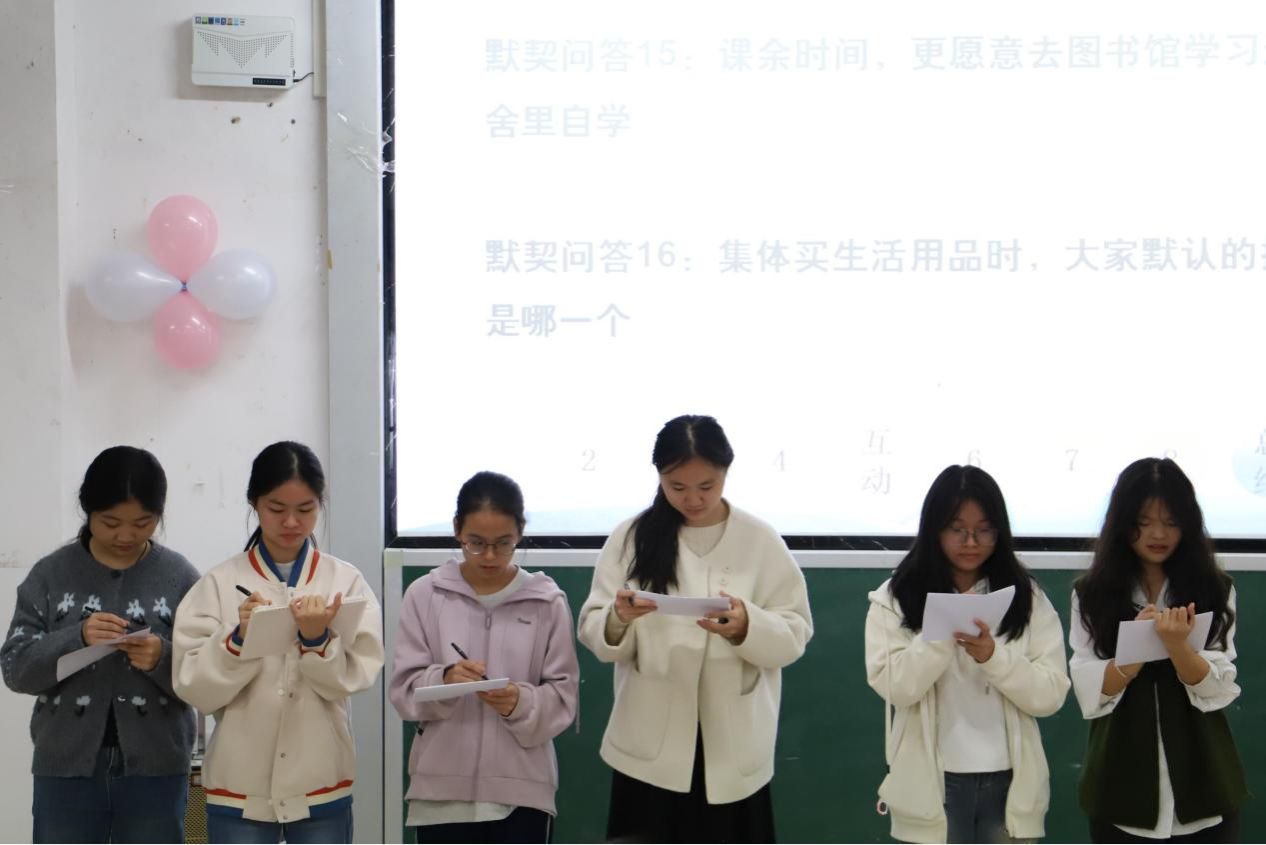 参赛宿舍依次登台,通过宿舍风采展示、情景演绎、默契问答三个环节全方位亮相。参赛宿舍展现了各具特色的宿舍文化,但“互爱互助”的核心底色始终不变。在互动环节中,主持人围绕室友互助主题向现场观众提问,大家的精彩回答印证了同学们之间深厚的友爱之情。评委李双玲老师对本次大赛进行总结点评,她肯定了赛事整体达到的预期效果,比赛过程中细微之处提出中肯建议,期待后续活动持续优化、越办越好。