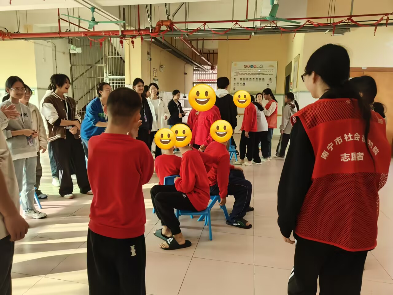 志愿者们赴南宁市社会福利院开展“教科暖阳,情系福苑”志愿服务活动,举办了一场主题为“童心暖冬,欢乐元旦”的趣味游戏嘉年华,旨在丰富社会福利院孩子们精神文化生活,提供节日关怀与集体庆祝体验。