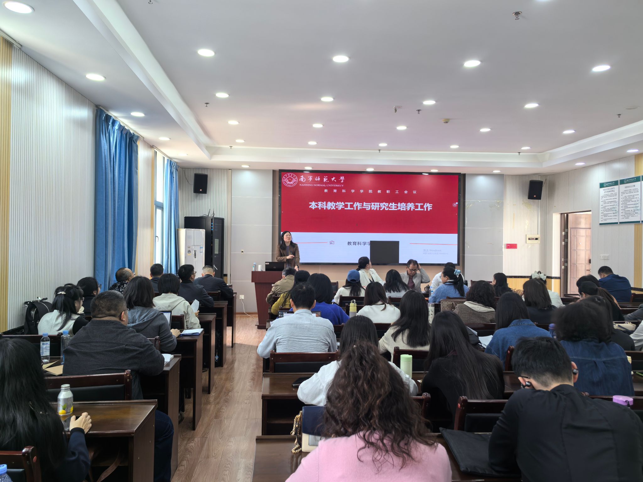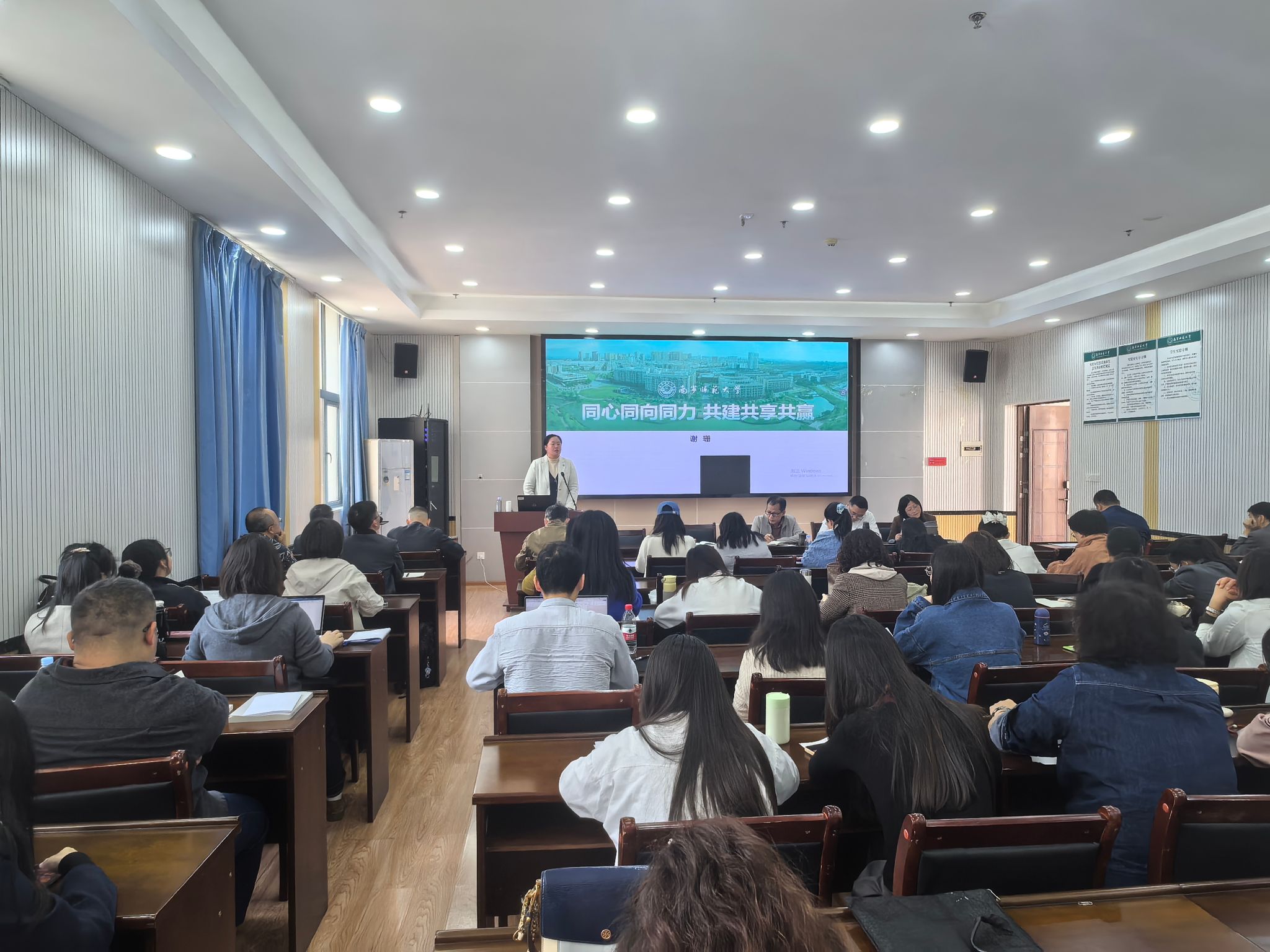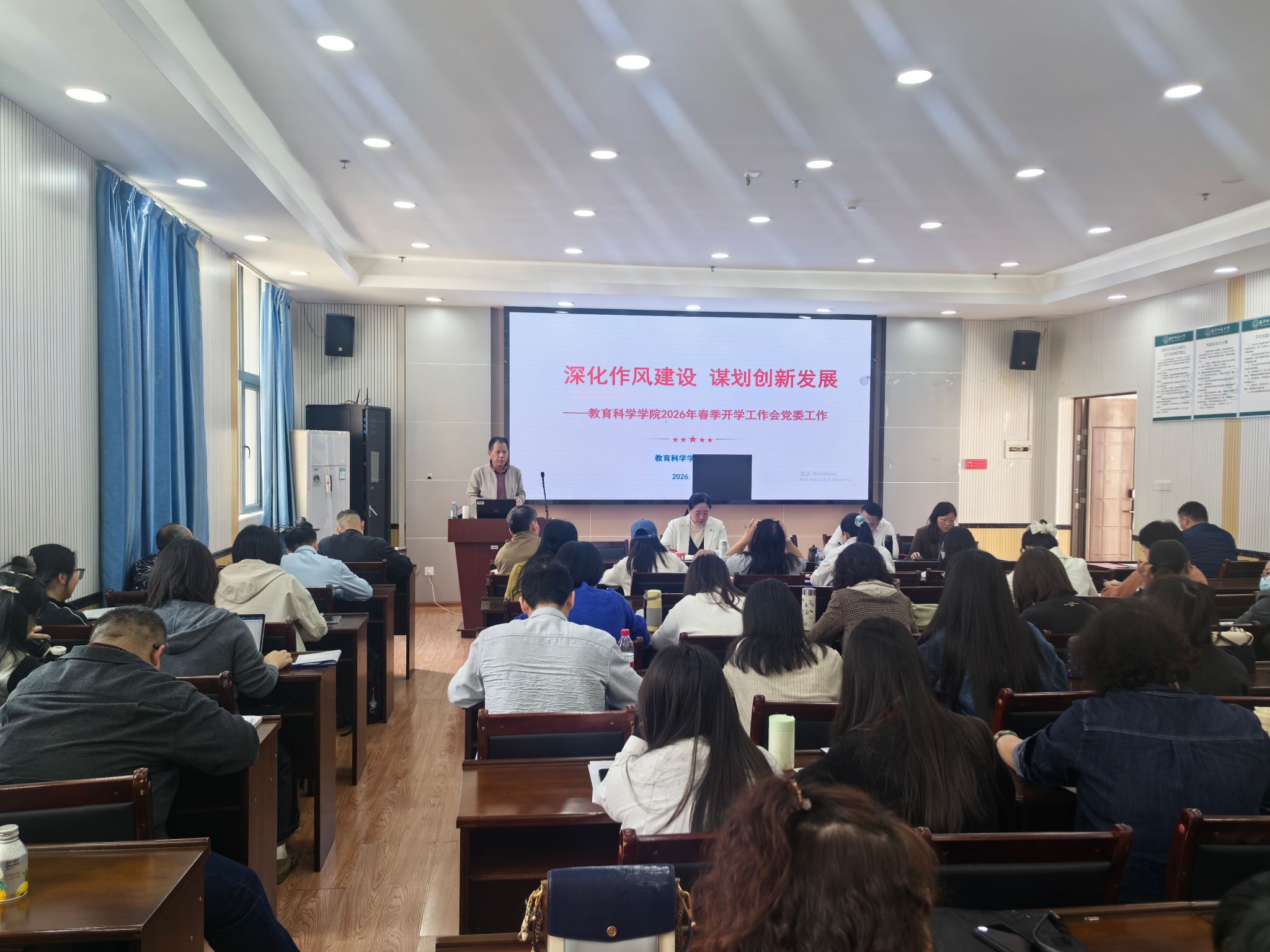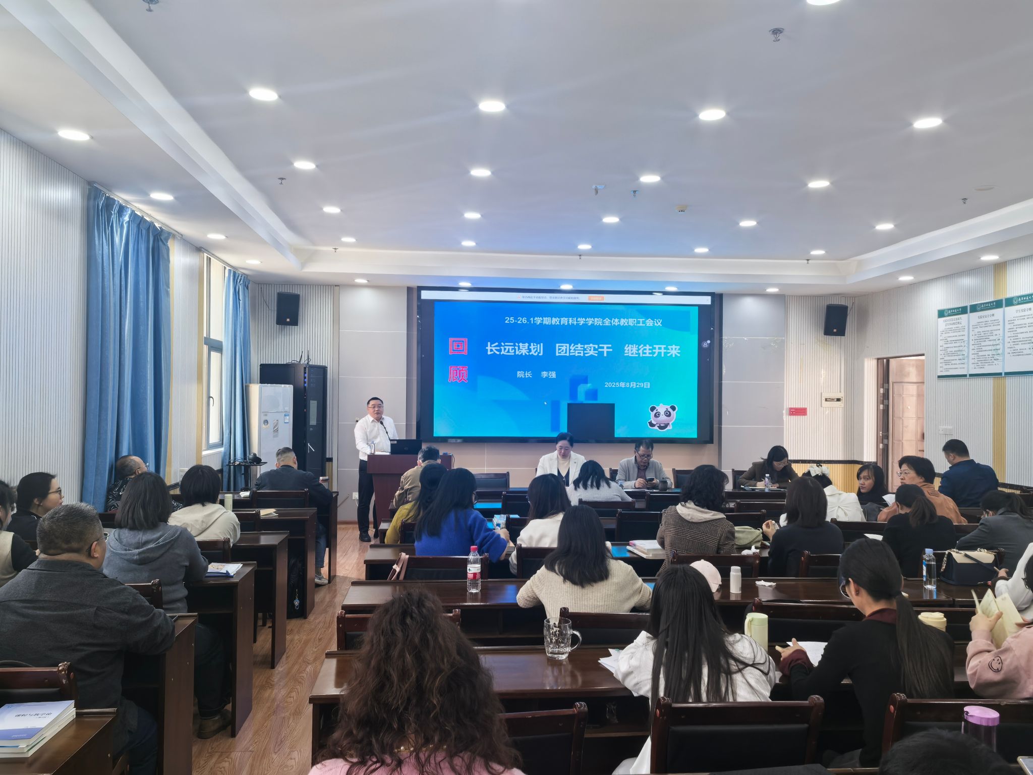 张瑞副院长回顾了2025年本科教学与研究生培养工作的成效与不足,解读2026年工作规划,围绕课程建设、教学改革、研究生培养质量提升等核心任务提出要求,强调要深化教育教学改革,探索特色培养模式,助力人才培养质量提升。谢珊副书记以《同心同向同力 共建共享共赢》为题作报告,全面回顾2025年学生工作、纪委工作、分工会工作,总结亮点经验、分析新形势新挑战,明确新学期三大板块工作重点,鼓励教职工协同发力,营造和谐育人氛围。