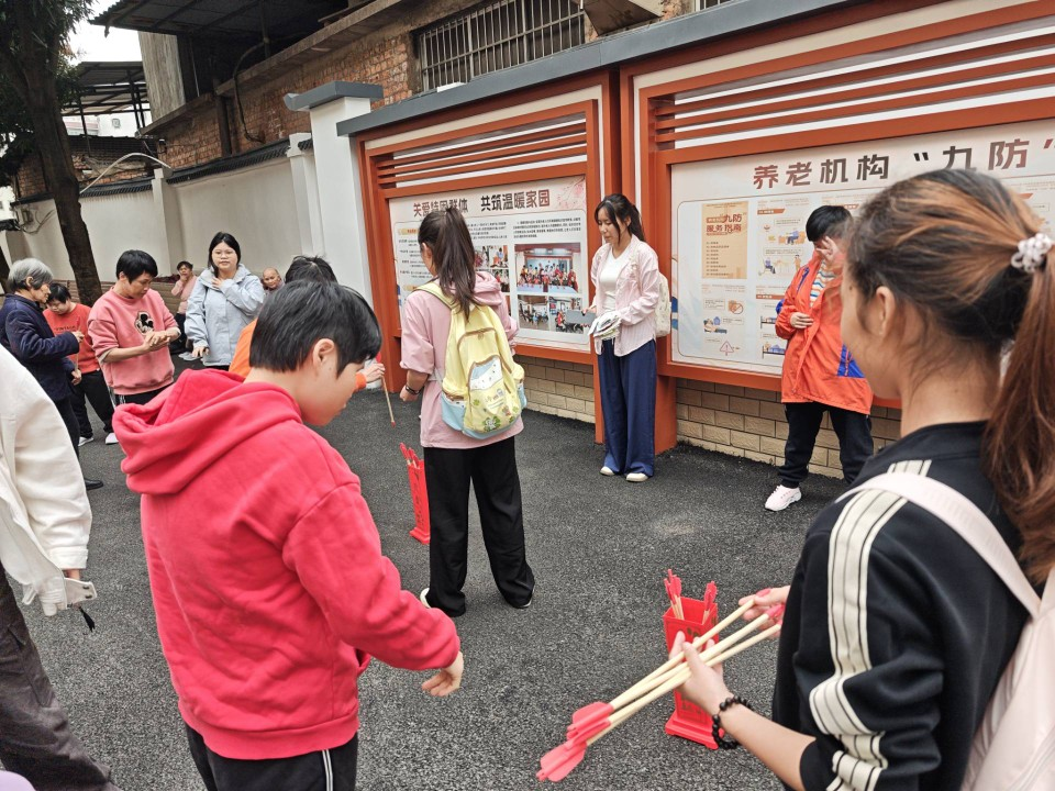 面对老年群体,志愿者们秉持耐心细致的态度,贴心准备了好运投一投、纸杯叠叠乐等轻松易懂的休闲互动项目,陪伴老人闲话家常、制作祈愿签、切磋游戏。在手工创作的乐趣与温情陪伴中,帮助老人们舒展身心、缓解孤独,现场氛围温馨容融洽、其乐融融。活动期间,志愿者们与老人、孩子们亲密相伴、温情互动,并用相机定格下一幕幕温馨美好的瞬间,留存这份特殊的温暖回忆。